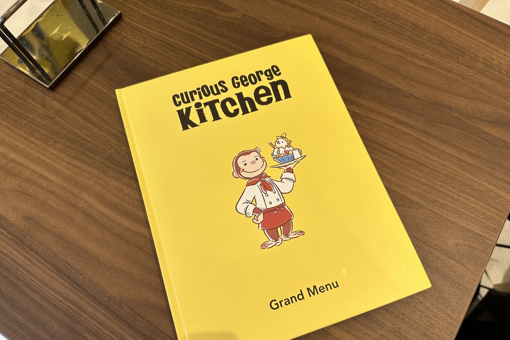 中にはメニューの写真と一緒にジョージや仲間たちのかわいいイラストが描かれています。